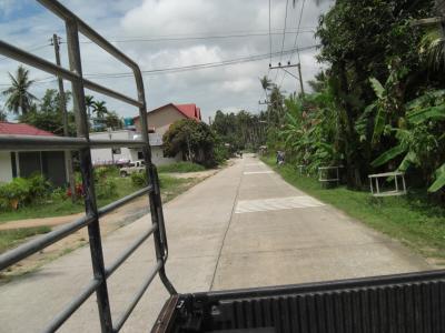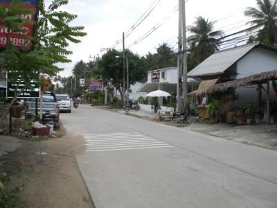 Der Ort auf der Insel Koh Pha Ngan, in dem unsere Bungalowanlage ist, heisse Ban Kai. Auf em Foto sieht man die Hauptstrasse des Ortes. An dieser Strasse findet mn kleine Restaurants, kleine shops und natuerlich shops um Motorroller auszuleihen.