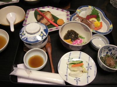 Das Abendessen (hier nur Aussschnitt, war noch viel mehr) in dem Hotel war traditionell Japanisch. Und: Es gab nicht ausschliesslich Fisch, auch viel Gemüse! Und ich hab rohen Thunfisch gegessen. War garnicht so schlecht...