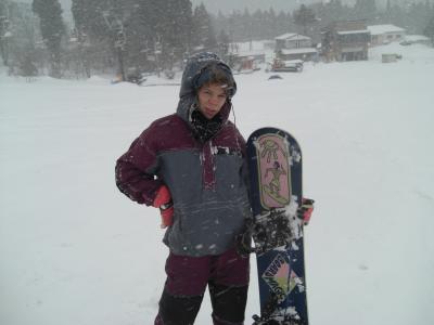 Mein erstes Mal Snowboard fahren! Zum Glück wusste Roger ein wenig wie das geht. Mein Rekord waren 10 Meter ohne hinfallen!