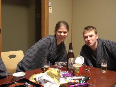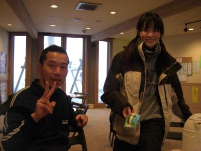 Das sind Shun und Yumi bei der Kaffepause nach dem Snowboard fahren: